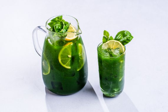 Basil cordial, Super juice, Fresh basil, Lime slices 400ml/1,6L