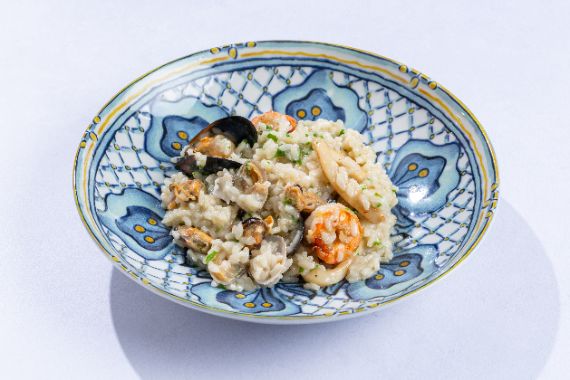 Creamy arborio rice cooked with a medley of seafood, garlic, white wine, and fresh herbs