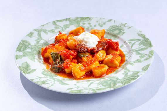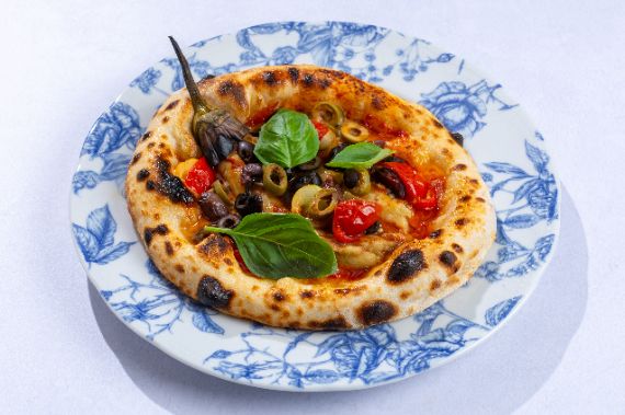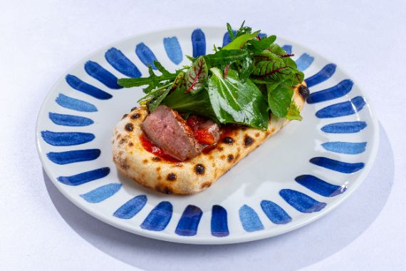 Slices of grilled beef on a rich tomato and vodka sauces served with rucola on a rustic Neapolitan dough.