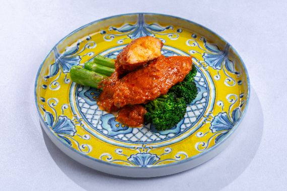 Pork belly and lion cooked to perfection with crackling texture at the outside and buttery inside, marinated in Mediterranean herbs, grilled broccoli served with cranberry relish.