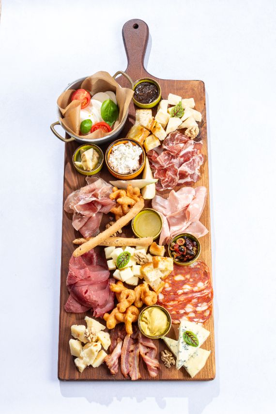 Chef's selection of cured meats-prosciutto, salami, coppa, bresaola and mortadelle-with focaccia and artisan mustard.