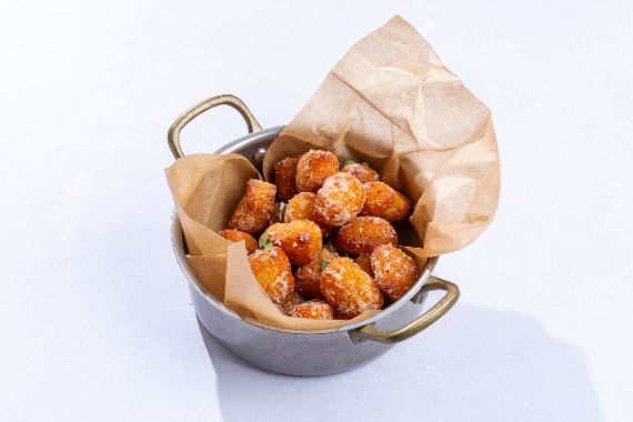 Fried crispy gnocchi mixed with Parmesan cheese.
