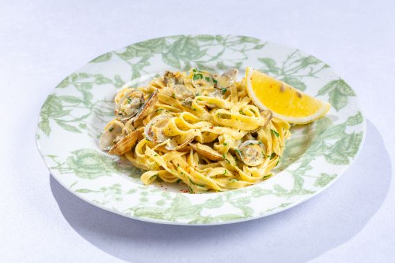 Cream and mascarpone base sauce with mussels and shrimps.