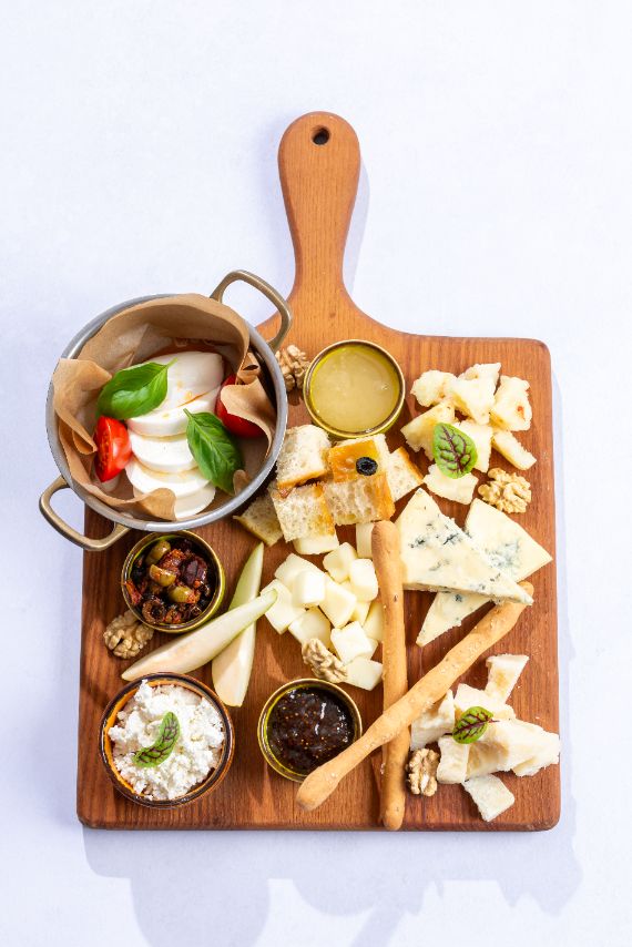 A curated selection of aged and soft italian cheeses, served with artisan condiments and rustic bread.