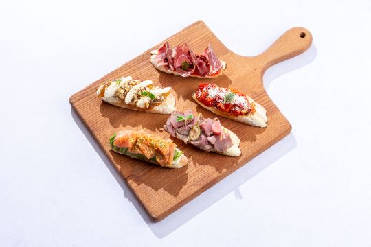 Խոհարարի կողմից ընտրած հնեցված մսամթերք՝ պրոշուտտո, սալամի, կոպպա, բրեզաոլա և մորտադելա, մատուցված ֆոկաչչիայով և մանանեխով
